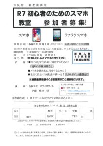 初心者のためのスマホ教室を12月2,9,16日、毎週火曜日全3回を開催します!
