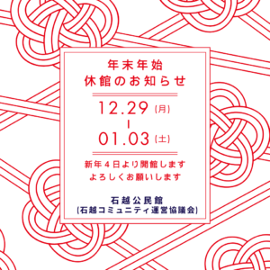 年末年始休館のお知らせ▹▹▹12月29日(月)~1月3日(土)